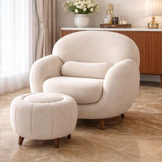 Curved Upholstered Lounge Armchair with Matching Ottoman