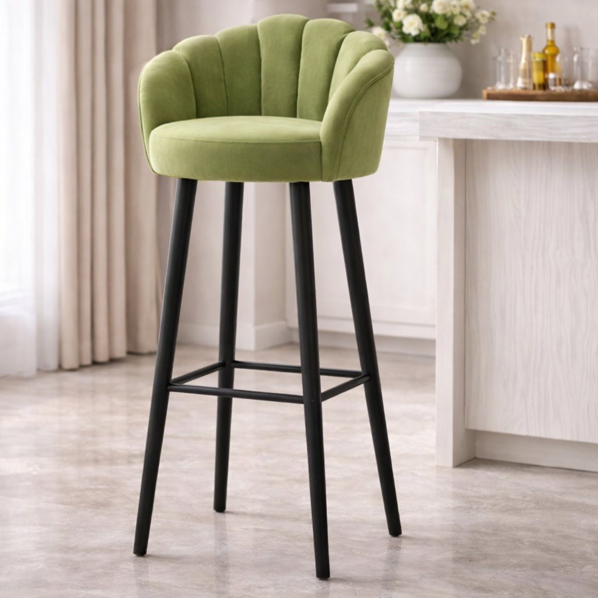Curved Upholstered Bar Stool with Metal Legs