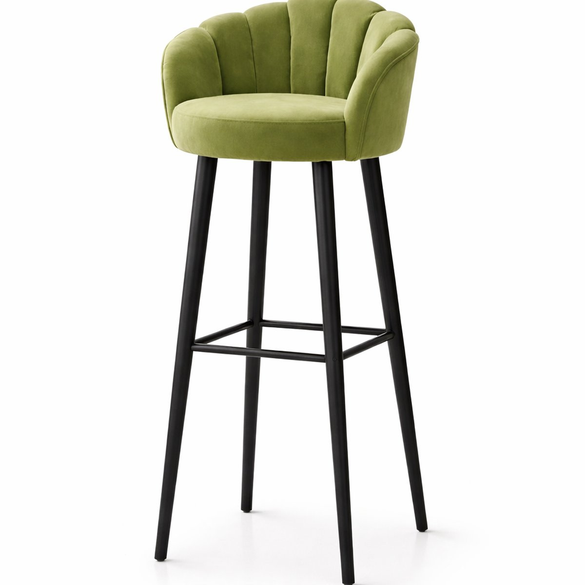 Supported by sleek, tall legs with a stabilizing footrest, this bar stool balances style with functionality. Its compact yet inviting form blends effortlessly into modern, minimalist, and luxury interiors, serving as both a practical seating solution and a statement accent.