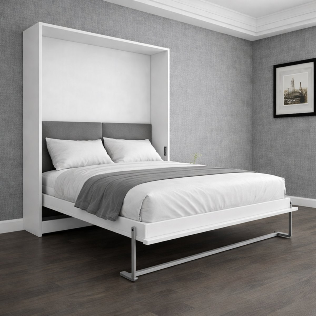 Vertical Wall-Fold Murphy Bed Frame with Minimal White Cabinet Finish