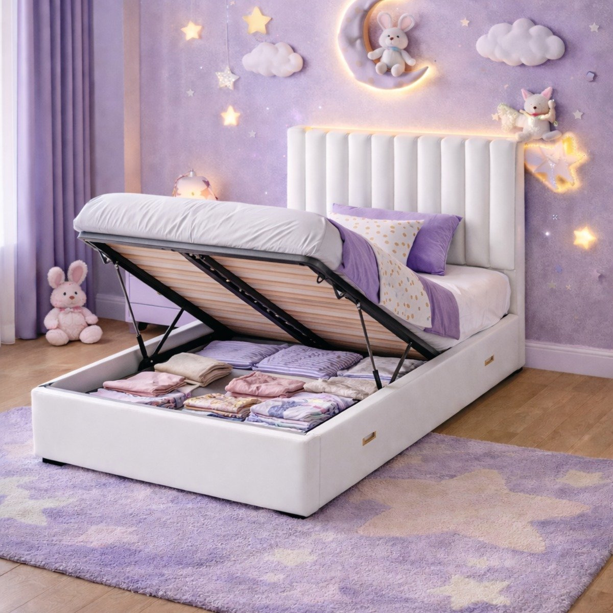 Kids Upholstered Hydraulic Storage Bed Frame with Padded Headboard