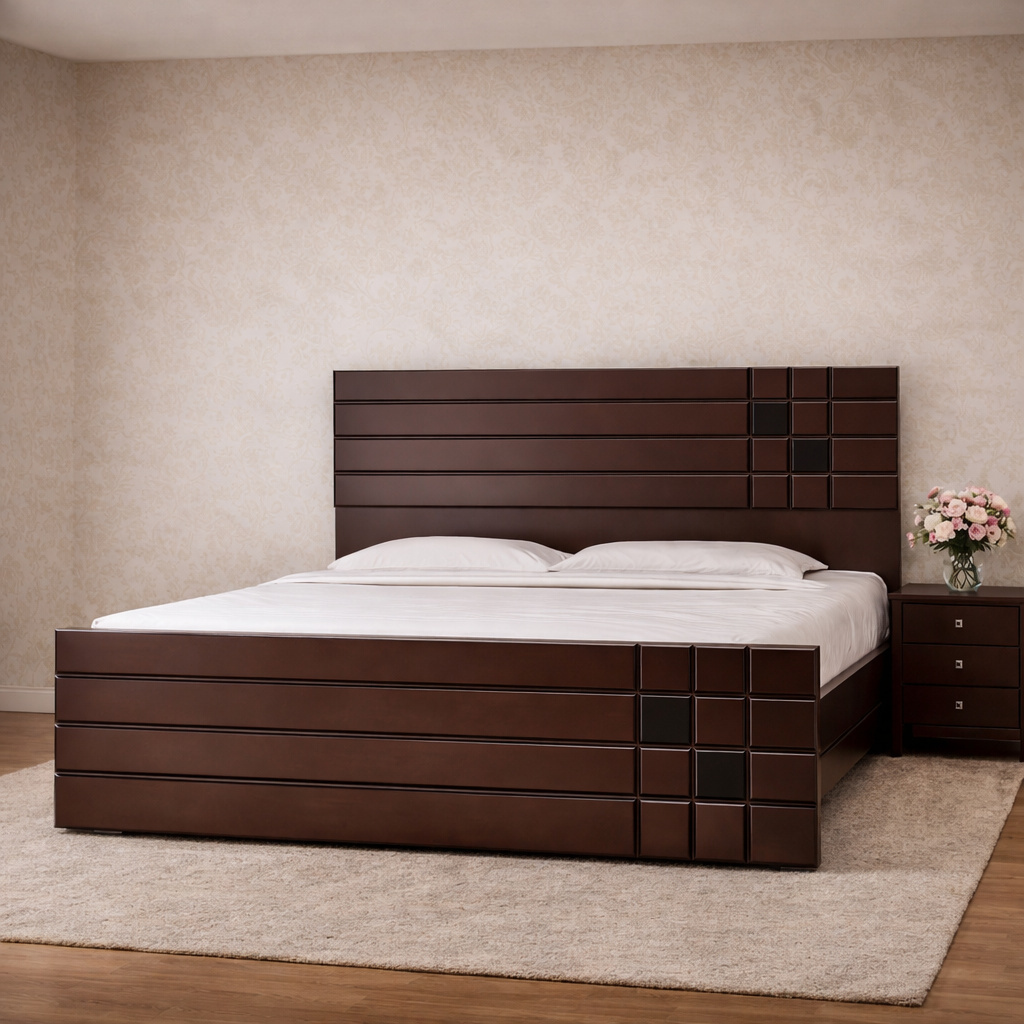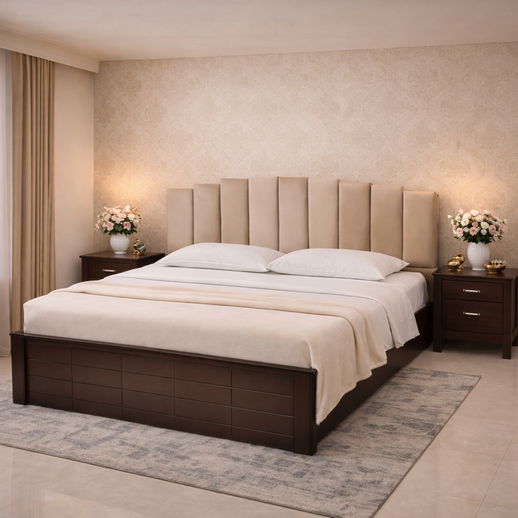 Modern Upholstered Bed Frame with Geometric Panel Headboard & Clean Box Base