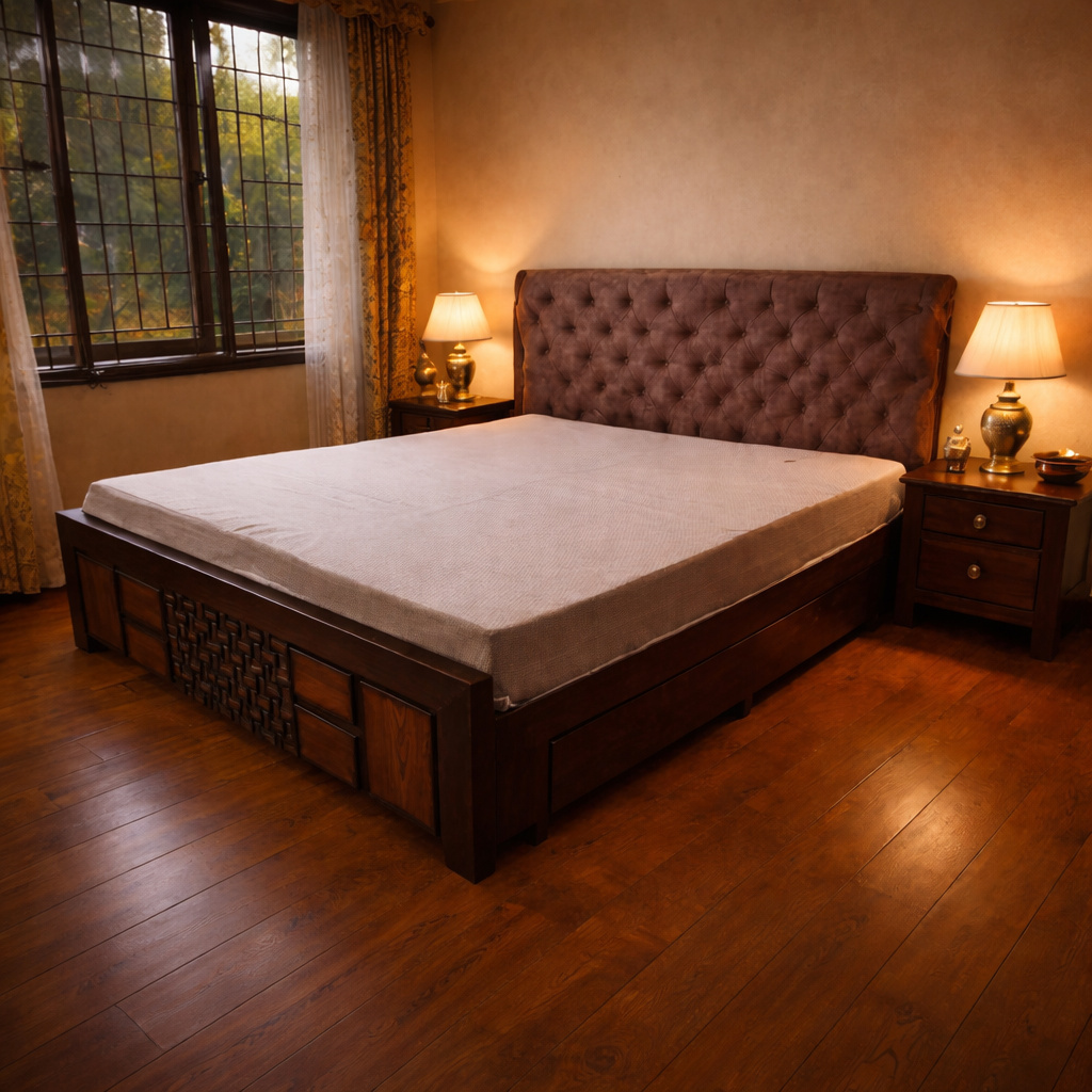 Luxury Upholstered Bed Frame with Diamond-Tufted Headboard & Soft Panel Base