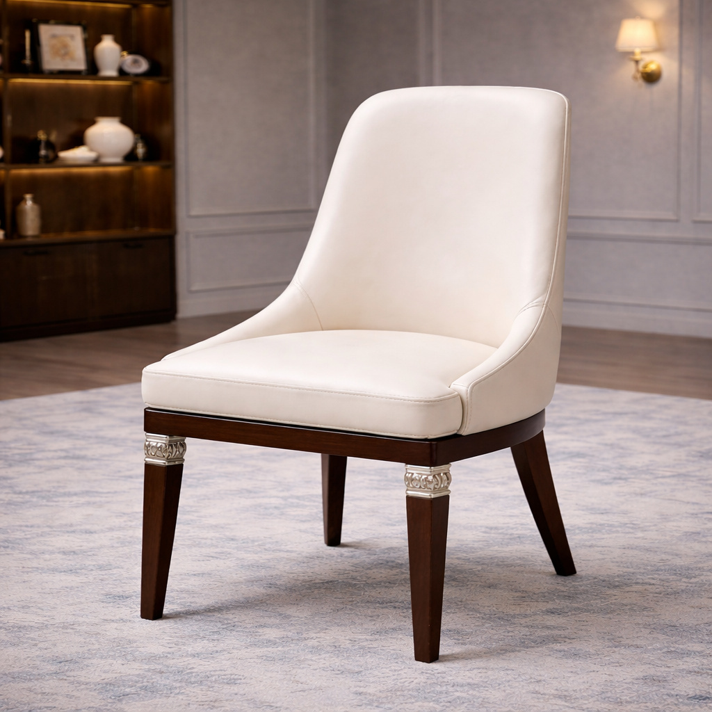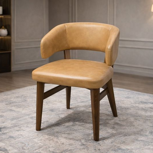 Aurelius Curved Back Upholstered Dining Chair with Solid Wood Legs