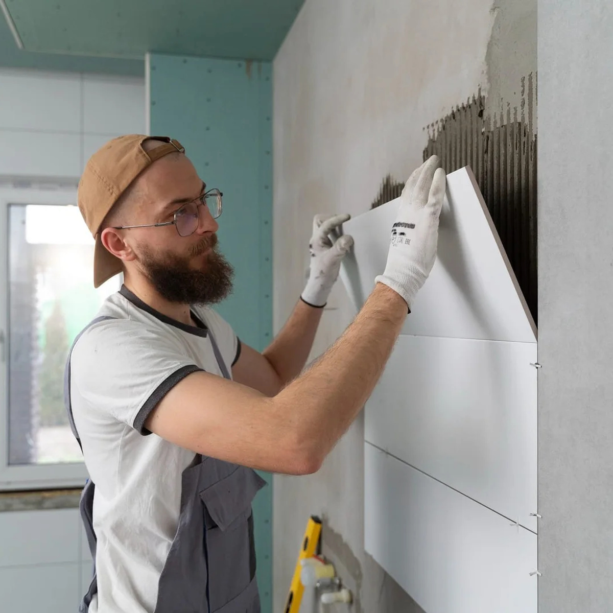 - Tile fixing with professional tools and materials