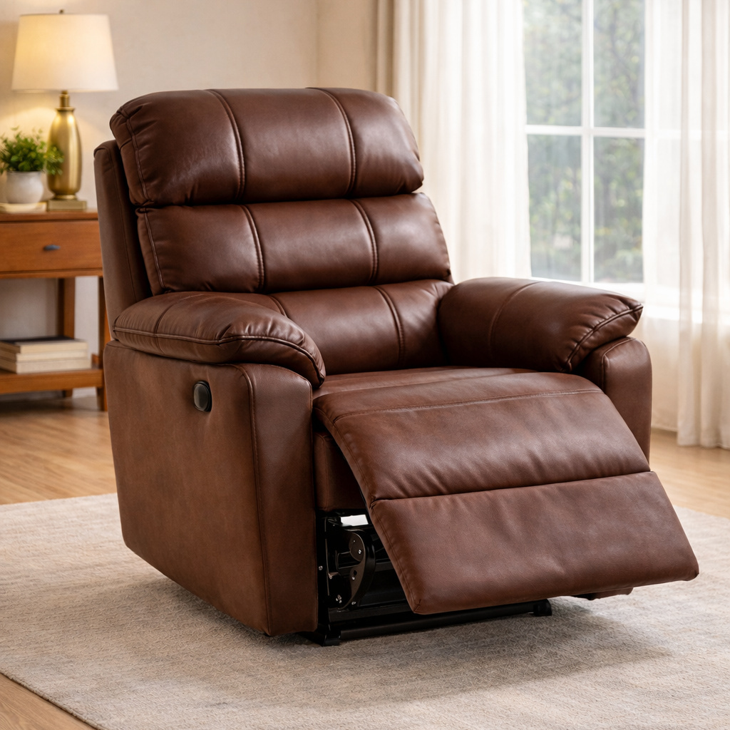 Premium Leather Recliner Chair with Manual Push-Back Mechanism