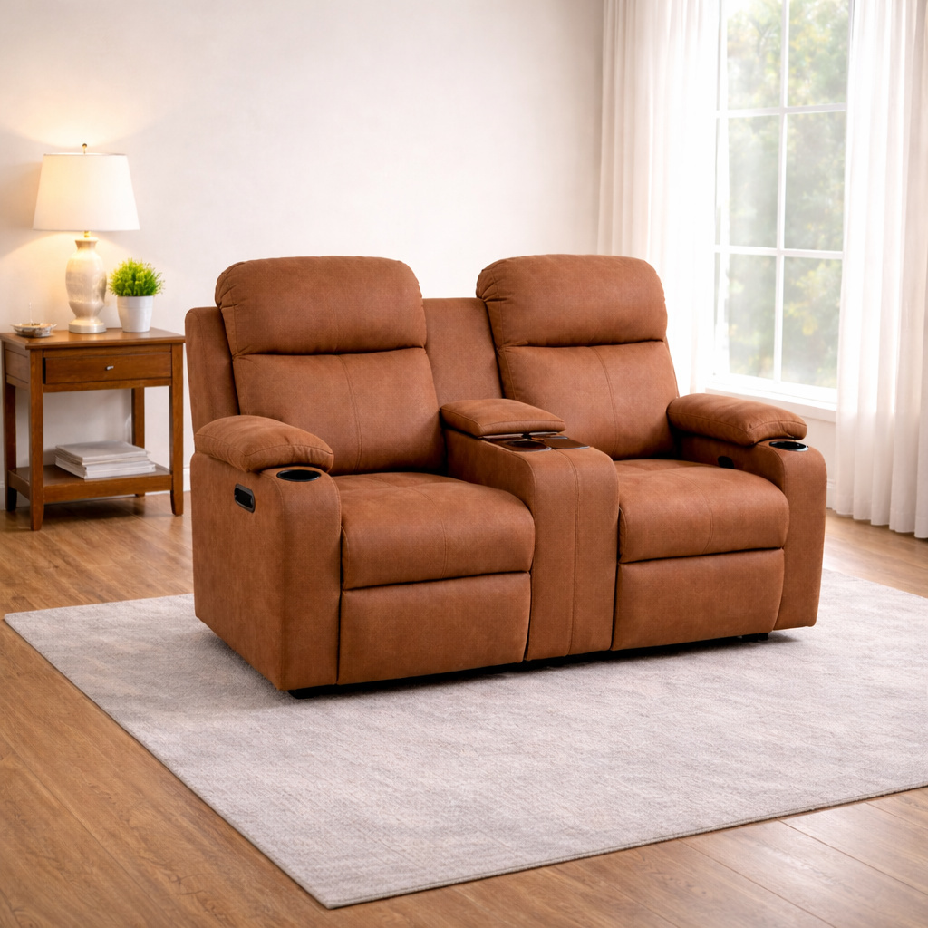 Luxury Dual Recliner Sofa (2-Seater) with Center Console & Cup Holders