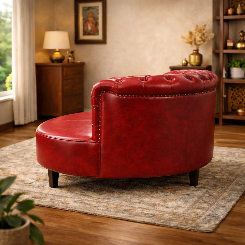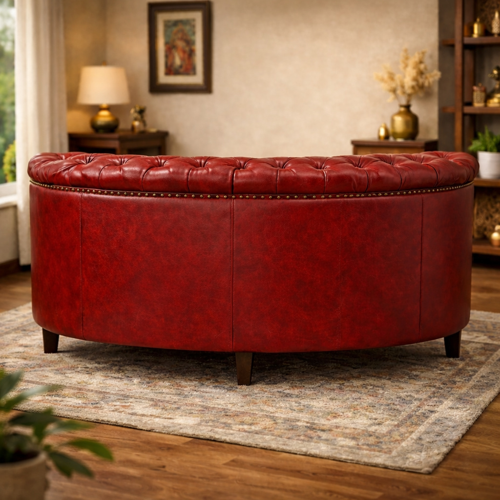 ₹80769 35% OFFDesigned to make a bold statement, this classic Chesterfield-style sofa showcases timeless elegance with a rich, luxurious presence. Featuring deep button tufting across the backrest and arms, rolled arm silhouettes, and a gracefully curved seat profile, it brings old-world charm blended with refined craftsmanship into any space.