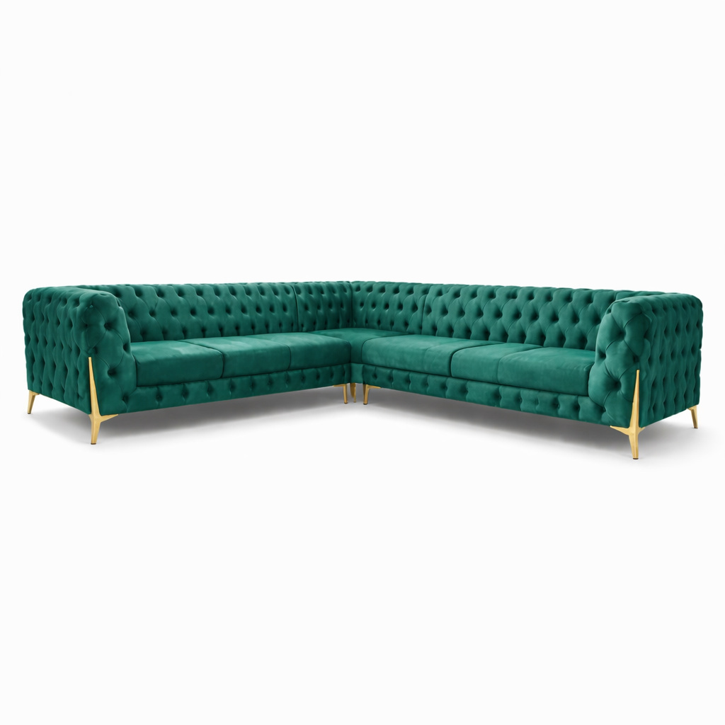 Luxury Tufted L-Shape Sectional Sofa with Gold Legs
