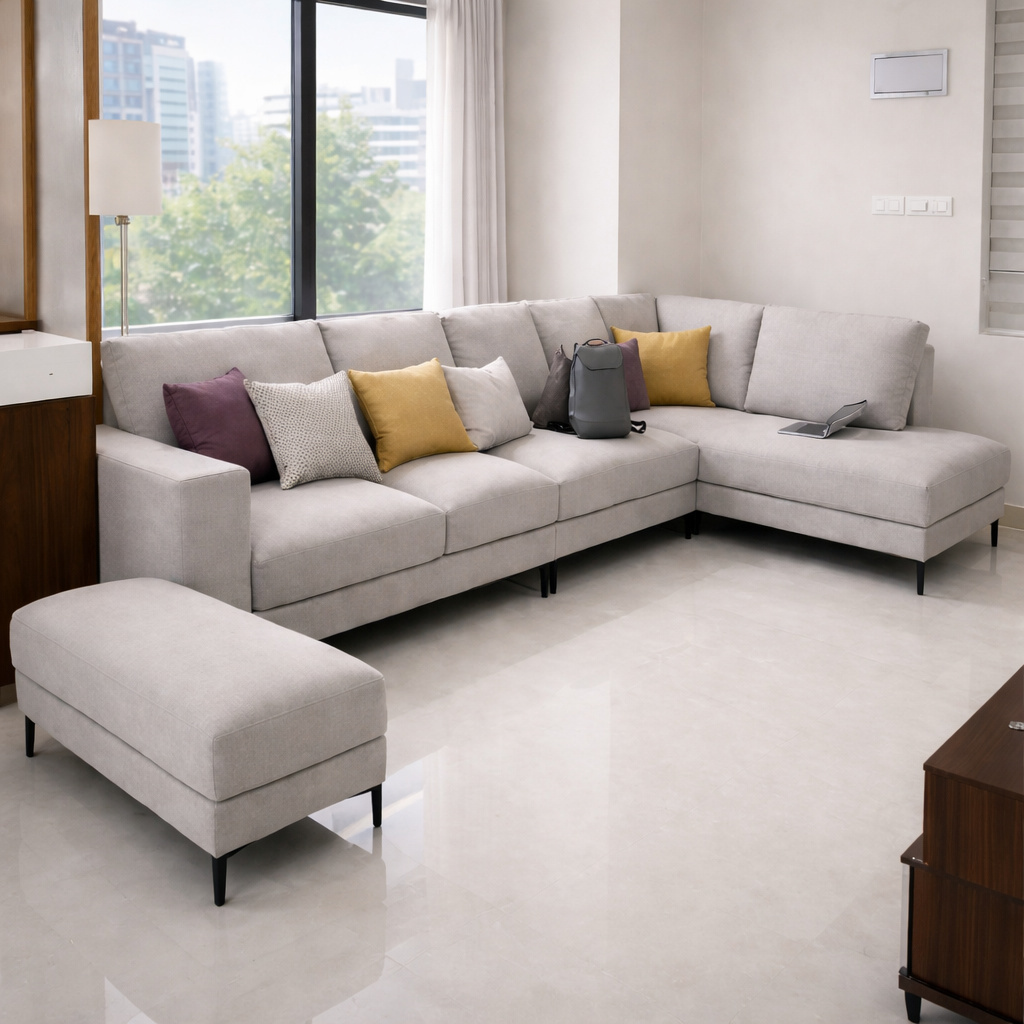 Modern Modular L-Shape Fabric Sofa with Chaise & Ottoman